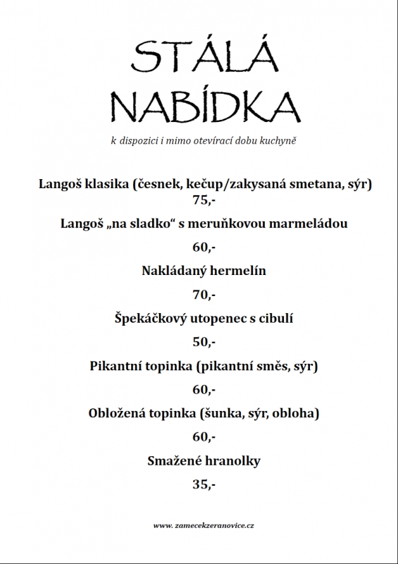 | Pátek | 10,30-14,00 - 17-22 | 10,30 - 14,00 |